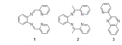 邻二胺与2-吡啶甲醛反应时得到的是n4席夫碱配体1[1],但是当把2-吡啶甲醛换成2-乙?;拎な?,以氯甲酸甲酯为催化剂,在异丙醇中反应没有得到相应的n4席夫碱配体2,而是得到了并六元环产物即2-(2′-吡啶基)喹喔啉3[2]。